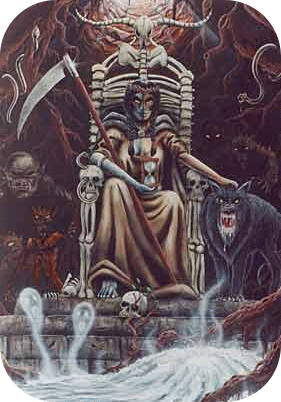 Hel est la déesse des morts, elle est la fille de Loki et de Angrboda sœur de Fenrir et de Jörmungand. Dans les croyances nordiques ancestrales pré-chétiennes Hel est l'une des hypostases de Freyja la Grande Déesse mère le nom hel (helja) signifie : accueillir, cacher, car Freyja est aussi la déesse de la mort qui accueille la moitié des guerriers. Elle est également la déesse guerrière.